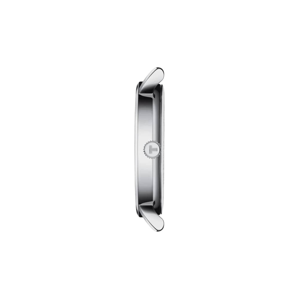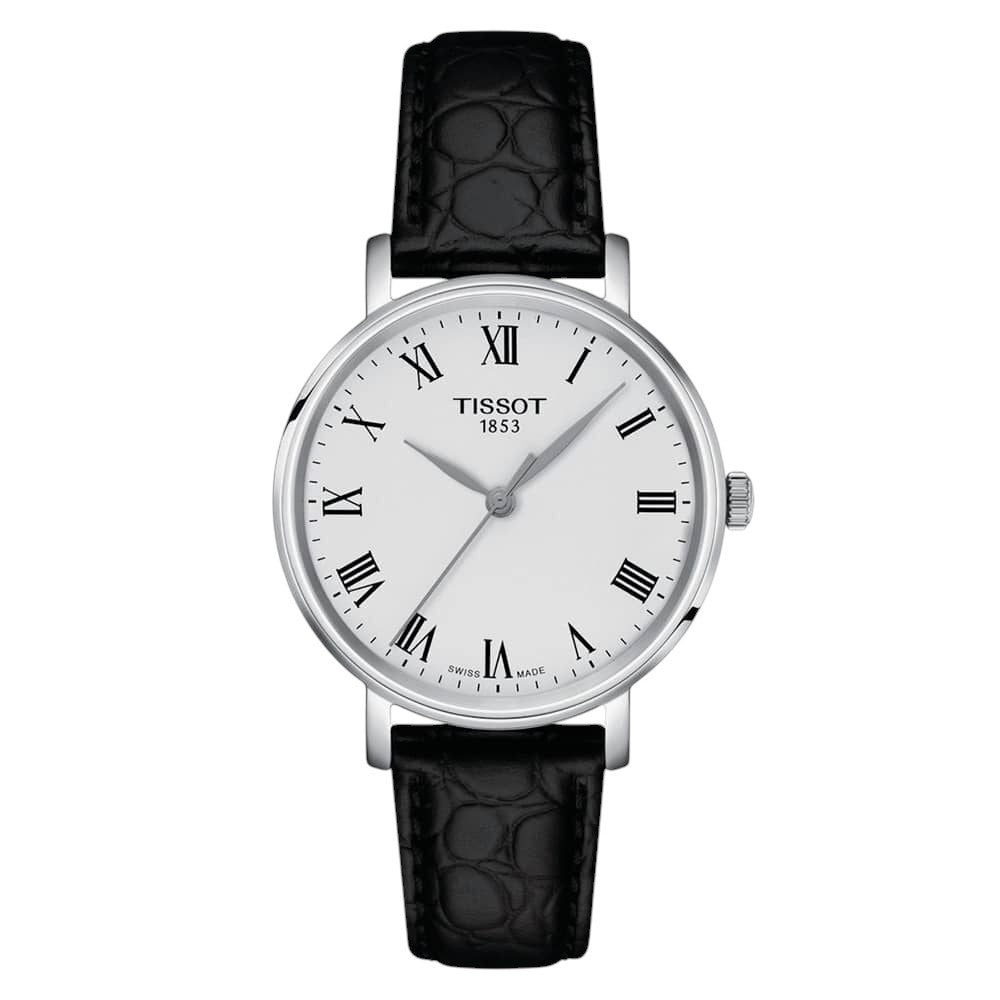 Tissot® T143.210.16.033.00, The alligator-grained cowhide strap in black pairs seamlessly with any attire, while the white dial exudes classic charm. Encased in durable stainless steel, this Tissot watch combines refined style with precise quartz movement, making it an ideal accessory for both formal and casual occasions.